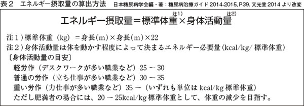 適切なエネルギー量は身長と身体活動量から算出できます(表2)。過食にならないよう「腹八分目」、ときには残す勇気も必要です。