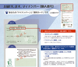赤ちゃんから高齢者まで、国内に住民票のある人全員に付けられた12桁の番号。番号は生涯変わらない。社会保障や税、災害対策の手続きで利用。2018年から預金口座に適用することも決まっている(任意だが将来は義務化も検討)。特定健診(メタボ健診)の結果や予防接種の履歴情報を共有するために番号を活用することも検討している。