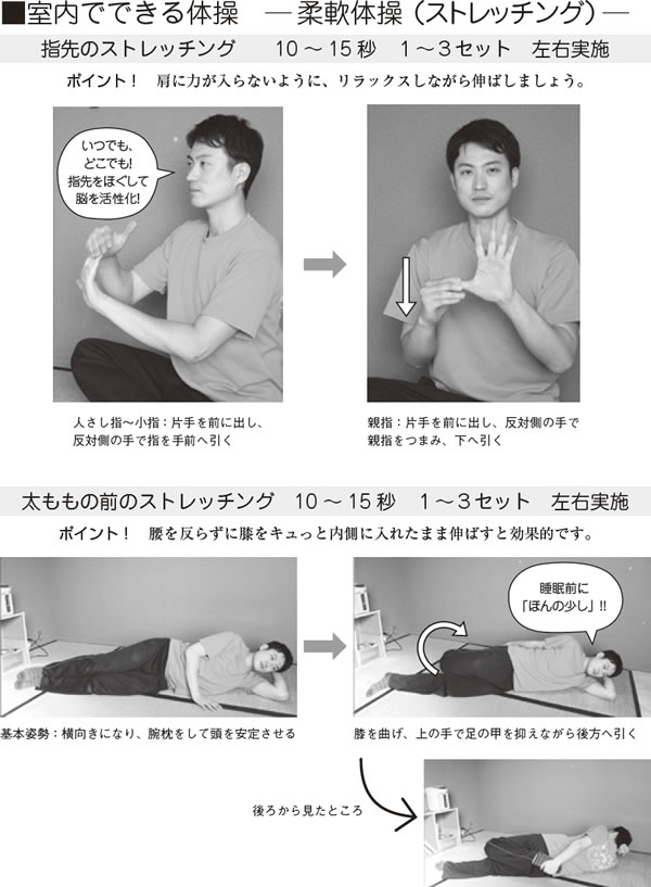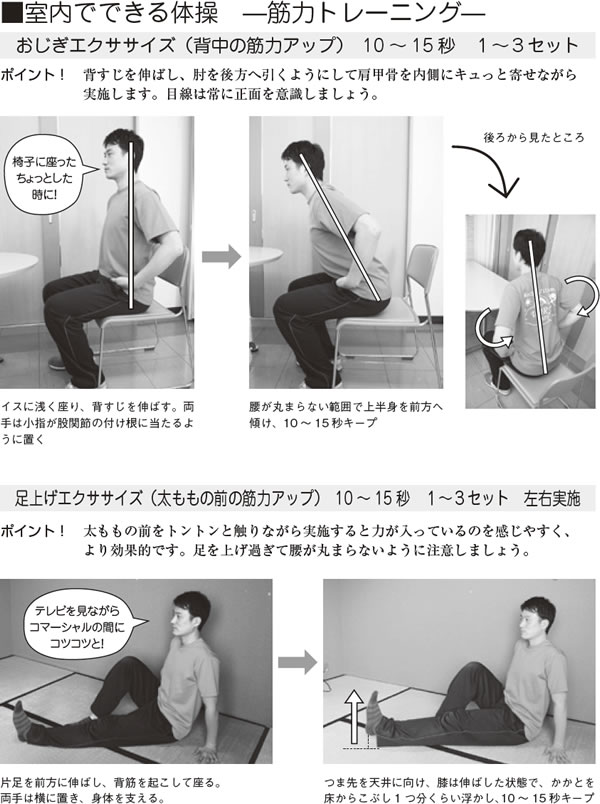 次のページでは筋力アップとストレッチングの体操を紹介します。ぜひ、試してみてください。