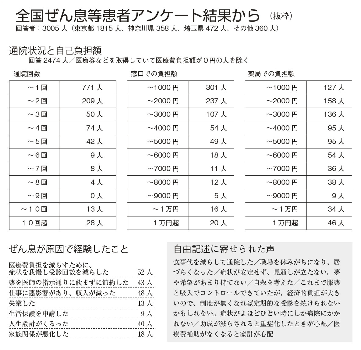 けんこう教室 ぜん息 全国ぜん息等患者アンケートから 定期受診できるよう医療費の助成を