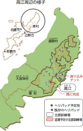 ところが政府は住民に説明もなく、 2007年から工事を開始。説明なしの建設に反対し座り込んだ住民を、通行妨害で訴える裁判も起こした。既に2カ所のヘリパッドが完成し、米軍は本格的な訓練を始めている。