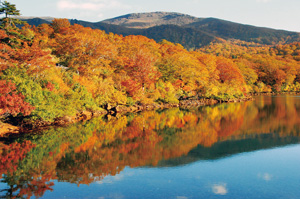 秋田・宮城・岩手の3県にまたがる栗駒山は、紅葉シーズンには大勢の登山客でにぎわう名峰です。村の中心部から、成瀬川に沿って走る国道342号線を車で約50分。標高1100m付近にある登山口の手前に、須川温泉があります。