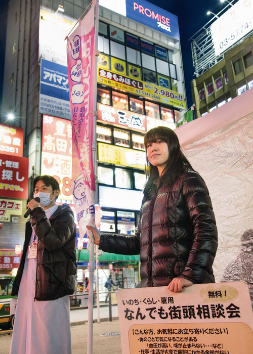 中野駅前の「なんでも相談会」(上写真)は、2010年に始めて5月で77回目。中野共立病院と中野共立診療所有志(東京)が毎月1回、第4水曜日の午後5時半から定期的に行っている。「待っているだけでは、本当に困っている人を救えない」と職員が事業所を飛び出し、駅前にテントを構えて相談に乗る。