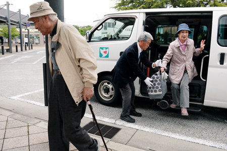 病院の小型バスが地域を走っている間、患者さんの移動用に代わりの軽ワゴン車を確保。ところが、その軽ワゴン車を運転する人がいません。柴田さんは病院のボランティア委員会などとも相談しながら、機関紙でボランティアを募集することに。吉田病院では、外来受付や敷地内の植栽など、以前からボランティアが活躍する仕組みができていました。運転手として名乗りをあげたひとり、荻田見次さんは「お役に立ててうれしい。体が動くうちはできる限り続けたい」と意欲的です。