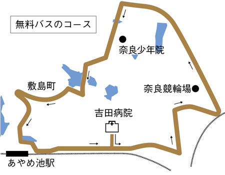 吉田病院(奈良市)は「平和会健康友の会」と協力して、病院周辺の交通が不便な地域を巡回する無料バスを走らせています。