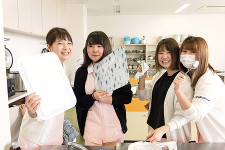 学食を準備する東葛健康友の会会員。左から2人目が久保知代恵さん