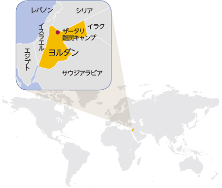ヨルダンで最大の難民キャンプが、シリアとの国境に近い北部にある「ザータリ」です。6万人が暮らせるように作られた敷地の中に、8万人近くがテントやプレハブに身を寄せ避難生活を続けています。