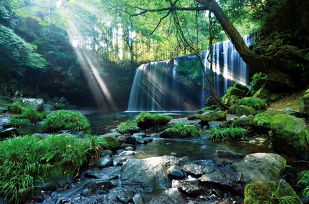 木々の隙間から差し込む光が美しい「鍋ヶ滝」(小国町提供)
