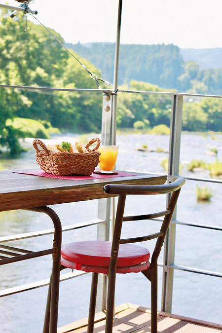「阿蘇はツーリングや登山、パラグライダーなどを楽しむアクティブな旅行者が多いので、土日、祝日は朝5時からモーニングも用意しています。地元食材と爽やかな清流の空気を、この絶景テラスで味わっていただきたい」とオーナーの濱崎正充さん。