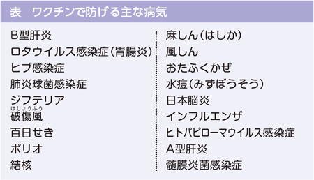 「VPD」(Vaccine Preventable Diseases)という言葉を聞いたことがありますか? 下の表でも分かる通り、VPDつまり「ワクチンで防げる病気」は現在、こんなにたくさんあります。