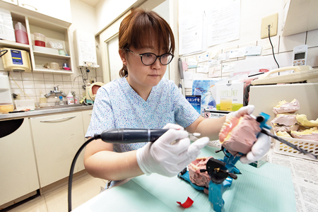 入れ歯を作るたたらリハビリテーション病院歯科医師の今井美恵さん