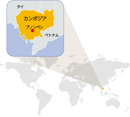 カンボジアの首都、プノンペン郊外。中心街を抜けて、田んぼに囲まれたガタガタ道を1時間ほど走ると、のどかな農村にたどり着きます。