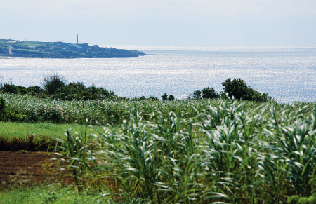 サトウキビ畑が広がる徳之島。犬田布岬(伊仙町)から東シナ海を望む