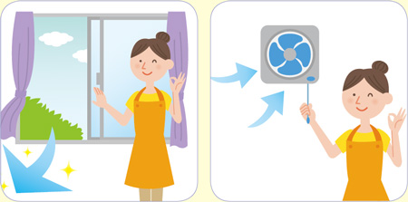 電気代は気になりますが、こまめに窓を開けたり換気扇を使いましょう。換気の際にはエアコンの設定温度を少し高くして、電源は切らないことです。