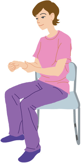 (3)左手で右手首のやや肘寄りの部分をやさしくおさえる。