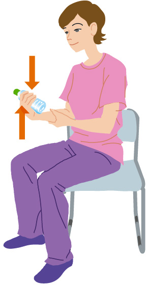(4)右手首を軸にして、ペットボトルを上下に動かす