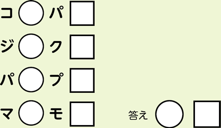 ○=ン □=ス コンパス、ジンクス、パンプス、マンモス