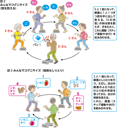 こうした日常生活で運動する機会に、併せて頭の課題も取り入れてみてください。このような活動を「コグニライフ」と呼んでいます。