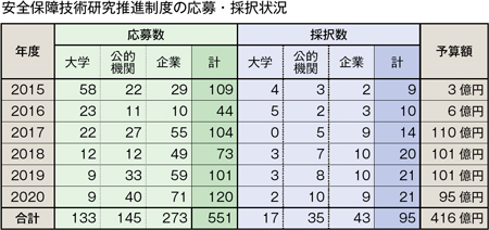 安全保障関連法成立の直後、2015年10月に防衛省の外局として「防衛装備庁」が設置された。同庁は軍事目的に利用できる先進的な民生技術研究を公募する「安全保障技術研究推進制度」を15年度から始め、採択された研究に潤沢な資金を提供している。