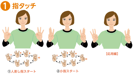親指と人指し指→中指→薬指→小指→薬指→中指→人差し指→中指→薬指→小指(2?3セット)