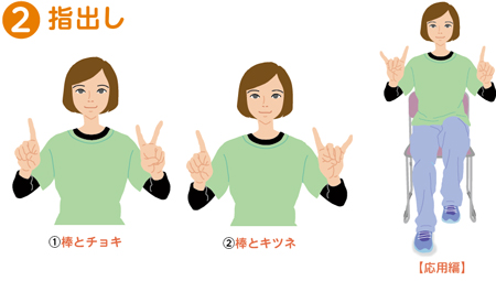 右手の人差し指を立て左手はチョキ→左手の人差し指を立て右手はチョキ(10回繰り返す)