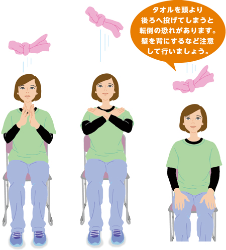 結んだタオルを頭上に投げ、落とさないようにキャッチする。