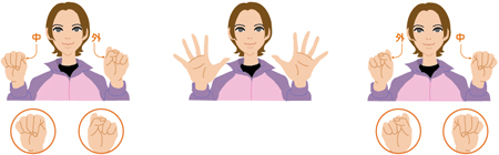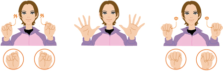 しっかり開いてパー→右手の親指は外に出してグー&左手の親指は中に