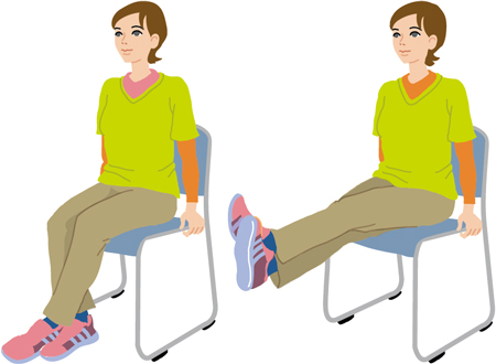 (1)いすに深く座り、左脚を上にして脚を交差させる。