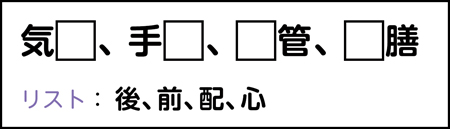 □には同じ漢字が入ります。リストから1つ漢字を選んで4つの二字熟語を完成させてください。