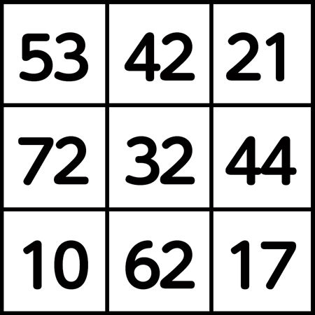次の9個の数字の中から、合計が100になる数字3個を選んでください。