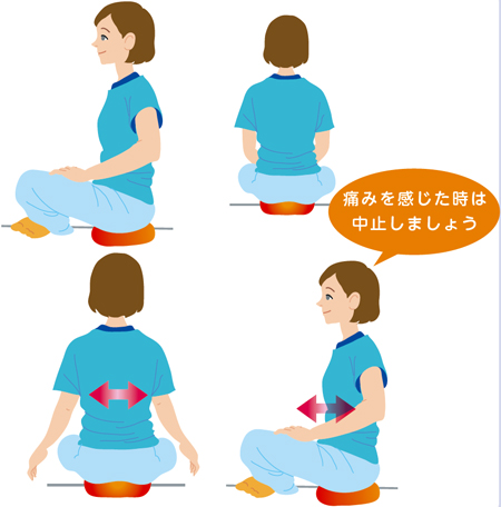 (1)ぷよぷよボール(ソフトギム)を用意して、その上に座る(ない場合は大きいタオルを丸めたものでも可)。