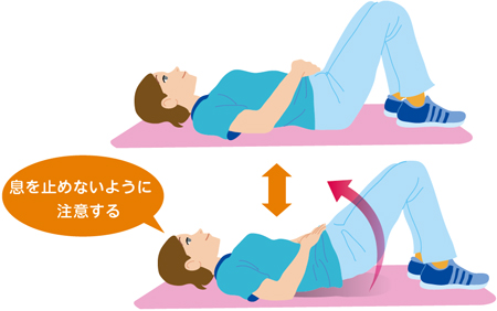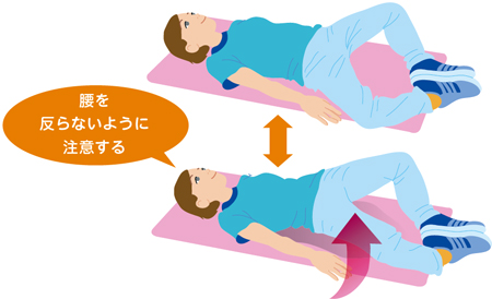 (2)肛門をキュッとしめながら骨盤を上げ、3秒キープする。