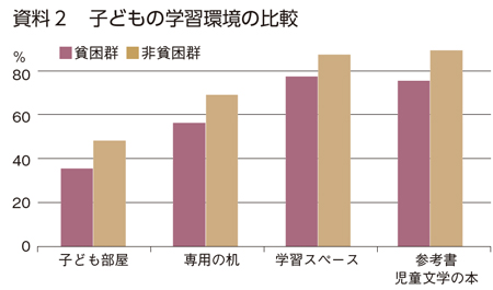 また、子どもの成育環境についても、貧困世帯と非貧困世帯でさまざまな違いが明らかになりました(別項)。