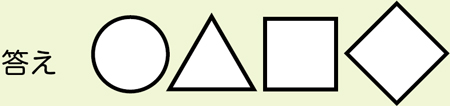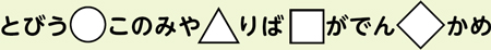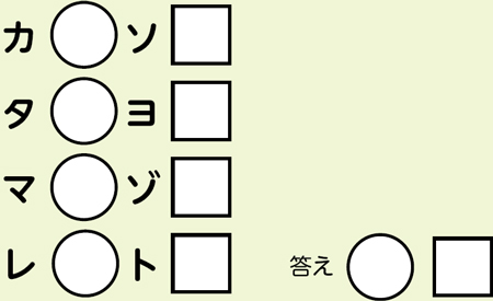 しりとりで並んでいる言葉の共通部分が○△□◇になっています(例えば「えすえ○ろしき」なら○には「ふ」が入る)。○△□◇に入る文字を順番に並べたらどんな言葉になるでしょうか?