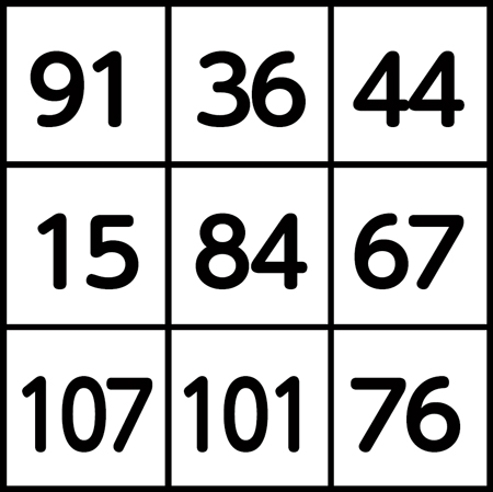 次の9個の数字の中から、合計が200になる数字3個を選んでください。