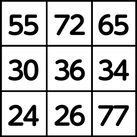 次の9個の数字の中から、合計が100になる数字3個を選んでください。