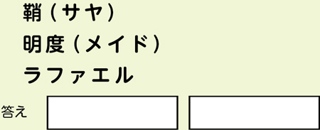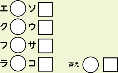 しりとりで並んでいる言葉の共通部分が○△□◇になっています。(例えば「えすえ○ろしき」なら○には「ふ」が入る)○△□◇に入る文字を順番に並べたら、どんな言葉になるでしょうか?