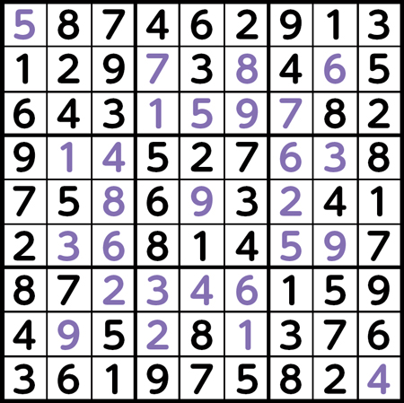 同じ列や同じブロックに、同じ数字がだぶって入らないように、マスを埋めてください。