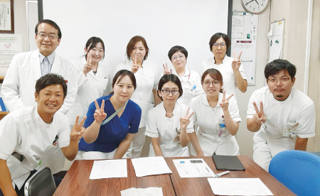 総合病院岡山協立病院の栄養サポートチーム委員会(撮影時のみマスクを外しています)