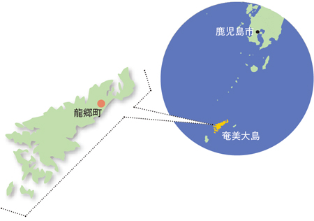 奄美大島の北部に位置する龍郷町は、海洋亜熱帯気候の森に囲まれ奄美固有の動植物の宝庫。