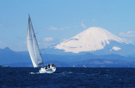 富士山をバックに相模湾を周遊するヨット(株式会社葉山マリーナー提供)