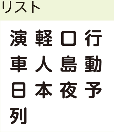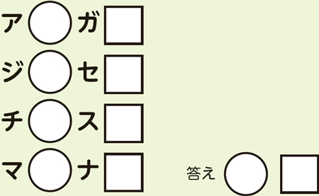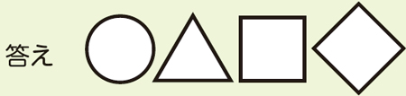 しりとりで並んでいる言葉の共通部分が○△□◇になっています。