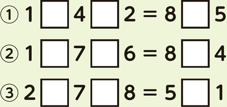右の各式を成立させると、+-×÷の中で使わない記号はどれでしょうか? ただし、各式で同じ記号は使えません。