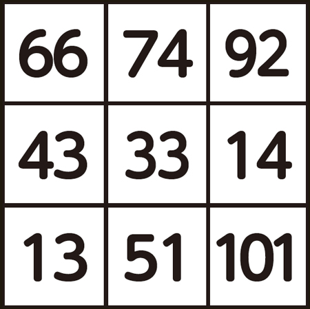 右の9個の数字の中から、合計が200になる数字3個を選んでください。