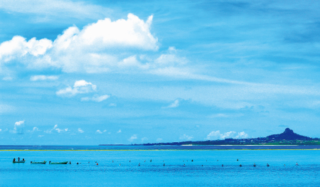 夏の沖縄の海は美しい。浅い海底の白砂に光が反射し、このエメラルドブルーをつくる。