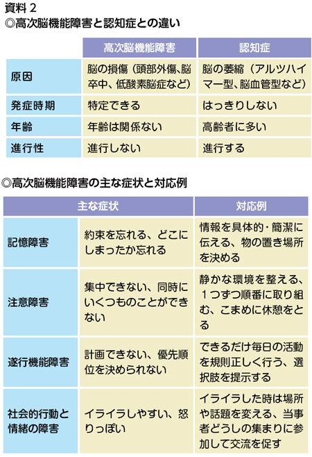 第3は「2025年に約700万人の患者数」とされる認知症への対応の試験的な取り組みになることです。認知症と高次脳機能障害はイコールではありませんが、患者さんへの接し方や環境調整など、対応や配慮すべき点に共通項が多くあります(資料2)。
