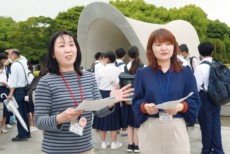 第10期卒業生の中村さんは「原爆碑のそれぞれに思いがこめられていて、広島出身の私も知らないことをたくさん学べた。(ピースナビゲーターは)どういう言葉を選べば伝わりやすいのか、考えることがとても勉強になった」と話します。