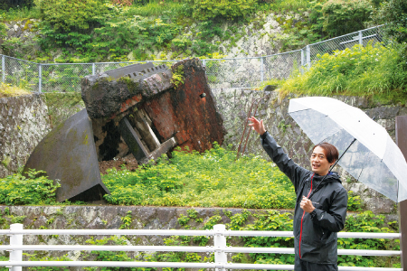 原爆で吹き飛ばされた浦上天主堂の旧鐘楼について話す小森さん