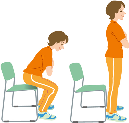 ③両足に体重を乗せてゆっくり立ち上がり、ゆっくり座る。