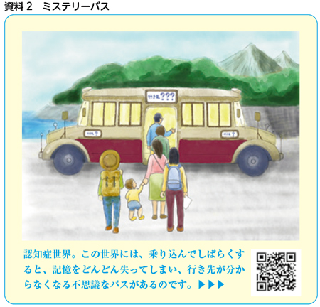 それでは認知症世界の旅へ出発しましょう。認知機能障害のうち、記憶障害を分かりやすく解説したストーリー(ミステリーバス)を紹介します。